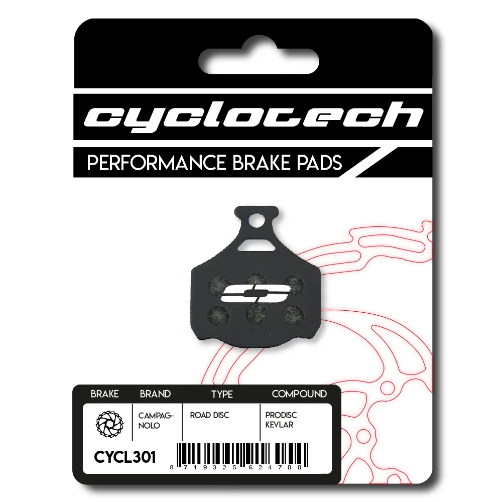 Zoek je een betrouwbare en krachtige vervanging voor je Campagnolo Schijfremblokken zonder direct over te stappen op competitieniveau? De Cyclotech Prodisc Kevlar remblokken bieden de perfecte balans van goede remkracht en een goede levensduur, wat ze tot de ideale allround keuze maakt voor jouw schijfremmen.