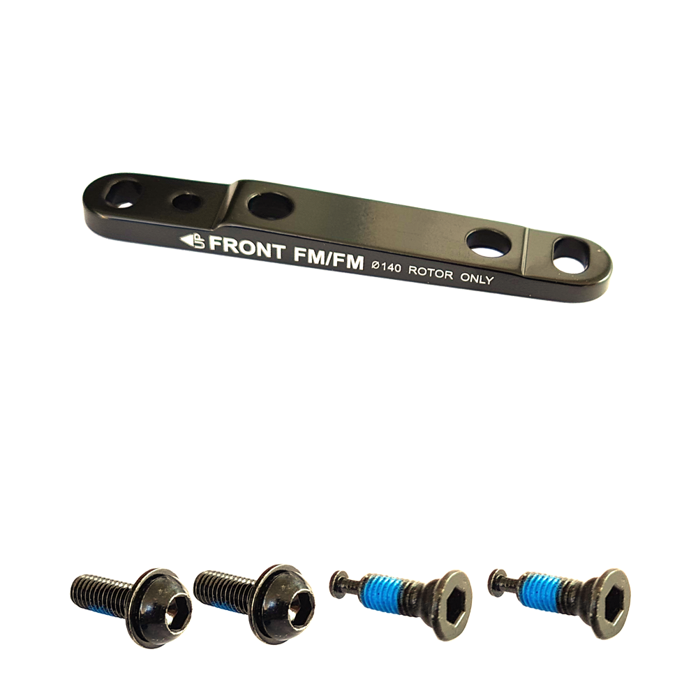 Adapter voor het monteren van een 140 of 160 mm remschijf op een standaard Flatmount voorvork.