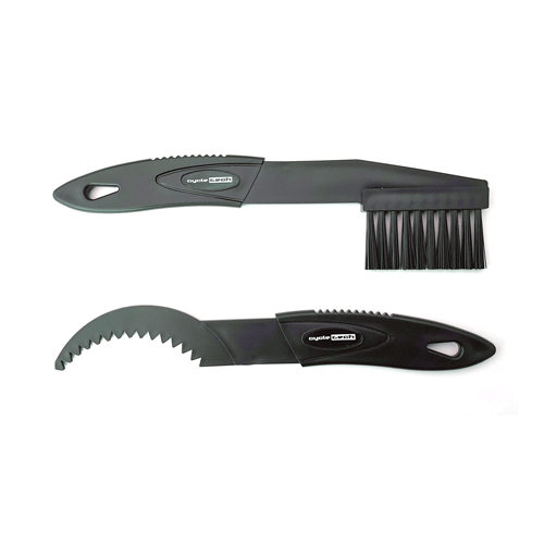 Gebruik de borstel voor de moeilijk bereikbare plaatsen en gebruik de krabber voor het verwijderen van het grove vuil tussen je tandkransjes. De krabber is zo ontworpen dat hij precies tussen de tandkransjes komt. Zo krijg je al het vuil gemakkelijk en snel uit je cassette!
