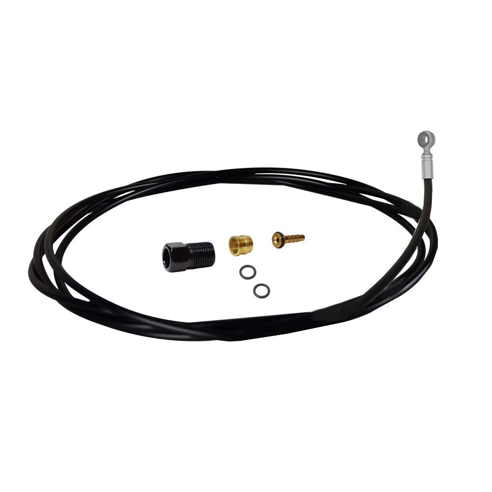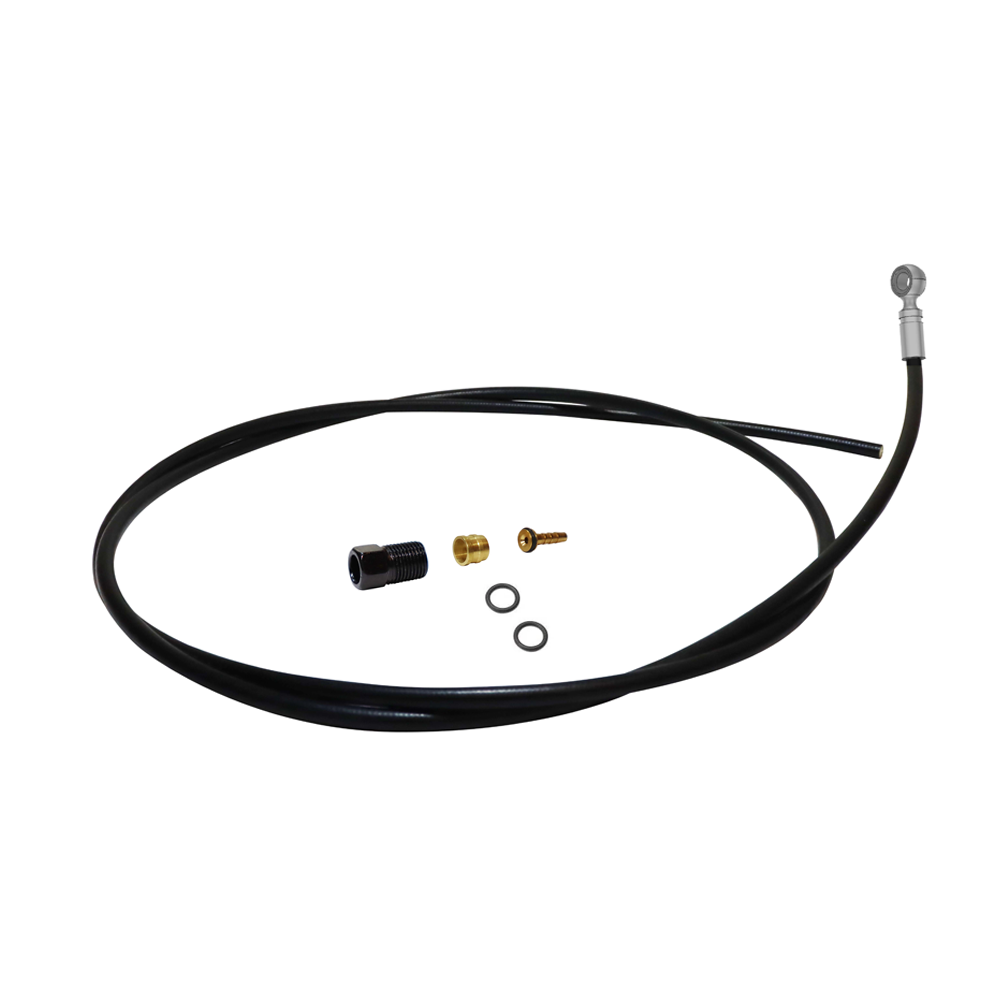 High performance kevlar hydraulische remleiding speciaal voor alle Tektro remmen met 90 graden banjo aansluiting. Keuze uit leiding voorrem (100 cm) of achterrem (180cm) of beide.